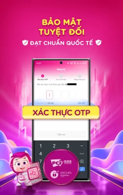 • Đạt tiêu chuẩn bảo mật quốc tế: PCI DSS cấp độ cao nhất; 2FA, SSL/TLS, Tokenization; Bảo mật nhiều tầng khi đăng nhập & thanh toán: mã xác thực OTP, xác thực vân tay/khuôn mặt, tự động khóa ứng dụng và tự động ngăn chặn giao dịch có dấu hiệu gian lận.