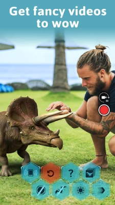 Make cool photos and videos while walking with augmented reality dinosaurs save them and share with friends.