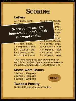 Once you spell a word and start transforming it into other words, don't break the word chain! That's a "Twaddle" and you'll lose points.