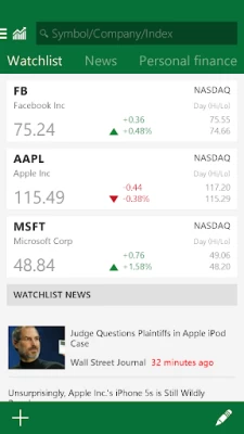 Track Microsoft (MSFT), Google (GOOG/GOOGL), Nokia (NOK), Facebook (FB), Apple (AAPL), Twitter (TWTR), Alibaba (BABA), and more.