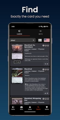 - Comprehensive card search with all MTG prints variants