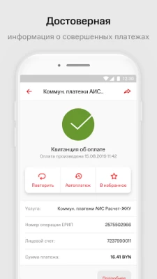 Установите автоматические платежи с любым удобным вам периодом и временем для оплаты, добавьте любой платеж в «Избранное», посмотрите историю операций, получите квитанцию об оплате и отправьте ее на свой почтовый ящик.