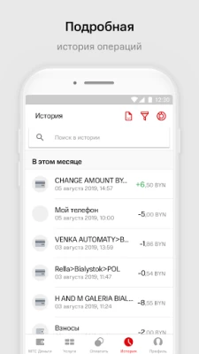 • просматривать единую историю транзакций, анализировать расходы, а также формировать выписку по своему абонентскому счету, включая расходы на услуги связи за любой период времени;