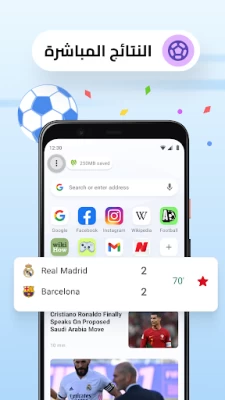أوبرا ميني تقدم قسمًا مخصصًا لنتائج المباريات المباشرة، مما يضمن الوصول السريع إلى نتائج مباريات كرة القدم.