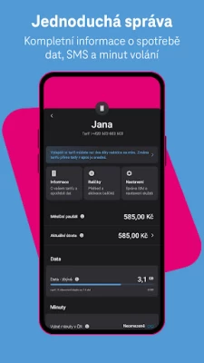 - You can see information about your current spending, how many free minutes, SMS and data you have left. Top-up data is easy in our app.