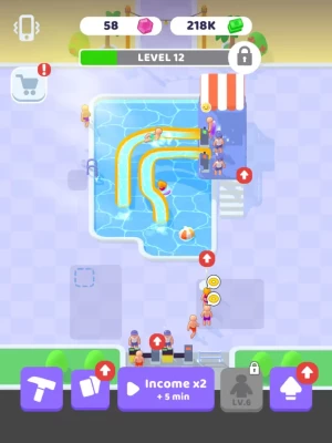 Challenge yourself trying to avoid long queues with angry people - it’s your chance to upgrade all your management skills. Make your aquapark business work the way you want it to! Dive into the game now and build, expand, and manage your own water park empire. Create unforgettable experiences for your guests and watch the entire business grow while you’re relaxing!