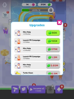 Welcome to the Aquapark Idle game, the ultimate idle tycoon game where you can build and manage your own water park empire. Start small with just one employee by expanding your waterpark limits with thrilling water slides, wave pools, and more. As an idle tycoon game, you can passively earn income and even reinvest to further expand your empire.
