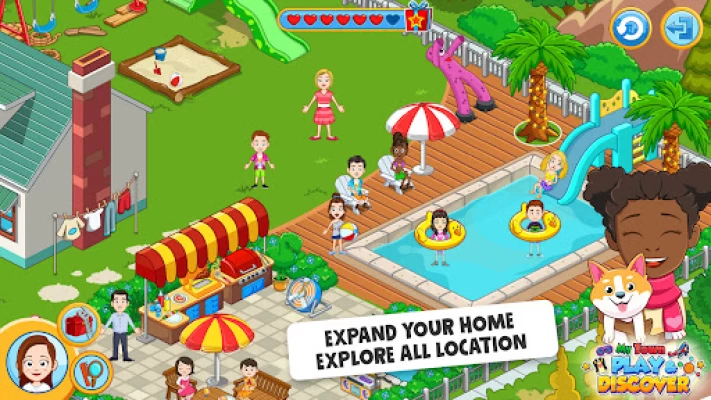 Explore all playhouses, make a pool party or hang out on the streets. You choose! Meet all the characters, discover all playhouses and create urban city stories! My Town city games for kids!