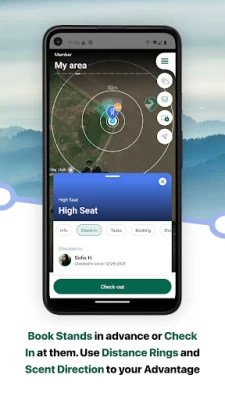 - Booking and Logging in Hunting Stands: Manage your hunting stands, reserve them in advance, check in at them to alert other hunters of your position, and add the safe shooting direction, even check the wind direction at that stand to plan the most advantageous place to hunt.