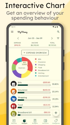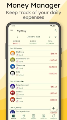 MyMoney is a personal money manager & budget app that helps you manage money use. This simple finance manager app can help you to track money use, manage budget, understand daily expenses and save money efficiently. MyMoney is not just a spending tracker, it has budget planner, intuitive analysis, effective charts and many helpful features - which make MyMoney a complete personal finance manager app. Use MyMoney and see the differences in your spending habit.