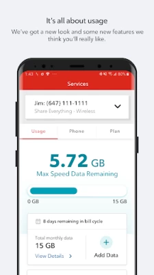 All customers on a Shared plan get even more from the MyRogers app! • Top up data before you run out and pause data access for any line • Monitor your data usage in real time • Set customizable data alerts for each line • View your bill and make payments