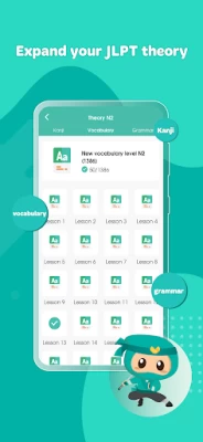 - Access audio with transcripts and translations for JLPT listening practice.