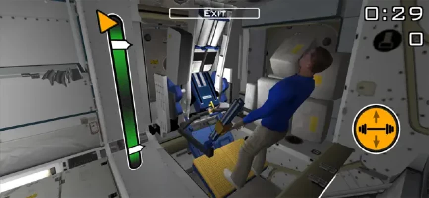 Collect mission patches for completing tasks, counteracting the effects of microgravity, and making discoveries.