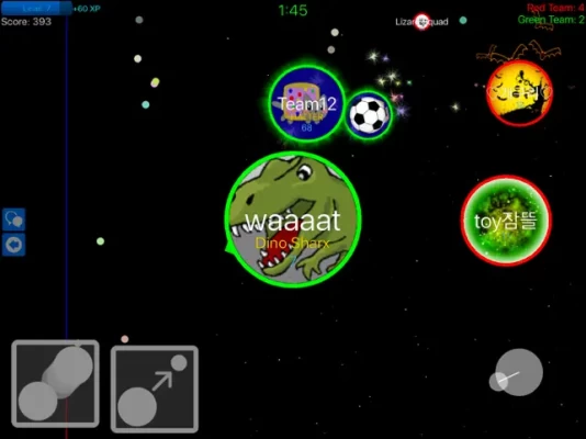 Grow your blobs by collecting dots placed throughout the game or gobbling up smaller players. Avoid bigger players attempting to do the same. Compete with other players to become the biggest blob in the universe!