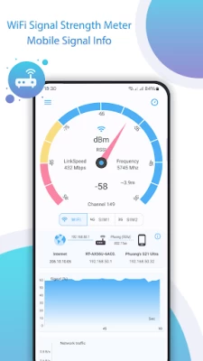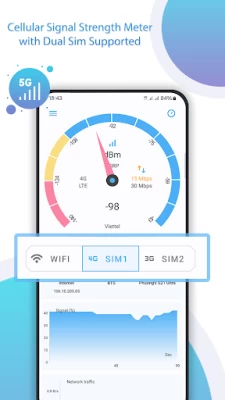 View 2G, 3G, 4G, 5G cellular signal, network operators, sim operator, phone type, network type, network strength in dBm, IP address,...