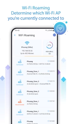 Wi-Fi-Name (SSID), BSSID, maximum Wi-Fi speed, IP address, public IP address, net capability, net channel, subnet mask, Gateway IP address, DHCP server address, DNS1 and DNS2 address,...