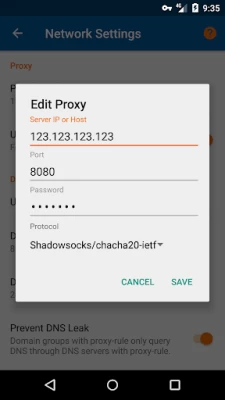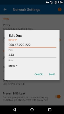 ✔ Custom DNS, change your DNS servers, support DNS query through proxy, and set DNS cache time