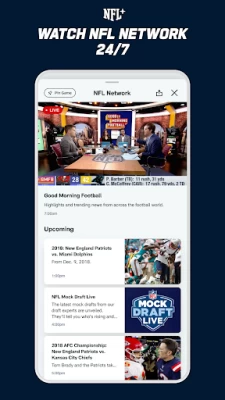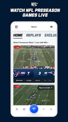 NFL+ is the National Football League’s exclusive streaming service and brings you LIVE local and primetime games on mobile, NFL RedZone, NFL Network, game replays and more - all in one place. NFL+ exists within the NFL app and NFL ecosystem.