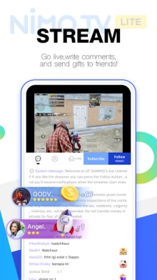 Nimo TV Lite is the small-sized version of Nimo TV. It's smaller in size but all your favorite still available.You can also enjoy a excellent video streaming experience.It is a community of players, gamers, and fans that drive conversation. Utilizing high-quality interactive technology, audiences can interact with streamers, and gain access to exclusive E-Sports events and tournaments, along with unprecedented access to the top streamers from across the region.