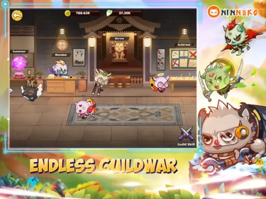 Their goal is to conquer the whole forest, build new villages, and establish a strong empire. To carry out the invasion, the village creates potential teams and continuously trains. A strategic Ninneko team is a combination of 5 classes: warrior, support, mage, ranger, assassin.