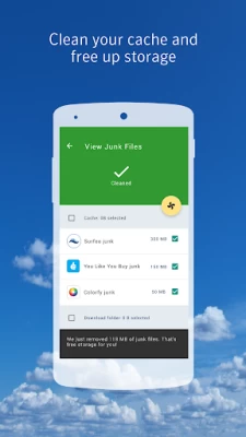 ◦ Storage cleaner helps analyze, cleanup and safely remove the junk files that take up your memory and storage space