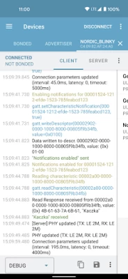 nRF Connect for Mobile is a powerful generic tool that allows you to scan, advertise and explore your Bluetooth Low Energy (BLE) devices and communicate with them. nRF Connect supports number of Bluetooth SIG adopted profiles together with Device Firmware Update profile (DFU) from Nordic Semiconductors and Mcu Manager on Zephyr and Mynewt.