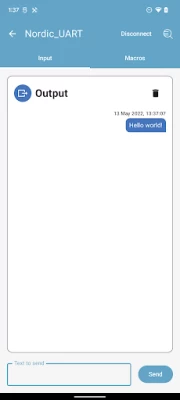 Since version 1.10.0 the nRF Toolbox supports also the Nordic UART Service which may be used for bidirectional text communication between devices. Version 1.16.0 added Android Wear support for the UART profile. The UI allows one to create configurable remote control with UART interface.