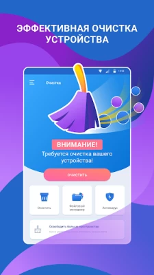 Сделайте свой телефон снова великолепным! Для этого мы предлагаем Вашему вниманию суперэффективный Клинер! Удобный и простой в использовании инструмент для очистки телефона, очистки от ненужного мусора, избавления от временных файлов и получения дополнительного места и свободной памяти после каждой очистки! О, а еще есть антивирус! Погрузитесь в совершенно новое приключение по очистке устройства!