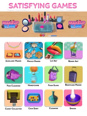 Enjoy this biggest collection of oddly satisfying games that includes 1) Satisfying cleaning for ASMR triggers2) Nails done & dentist bling 3) Honey Comb ASMR honey collection3) Brush tufting4) Candy collector via tread mill with ASMR triggers5) Orbeez decoration & crushing6) Coin sorting & Beads sorting