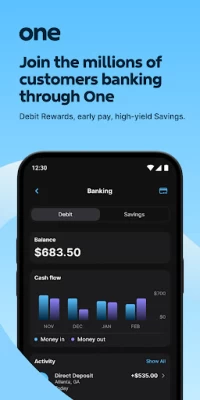 © Copyright 2024 One Finance, Inc. All third party products, names, logos, and brands are the trademarks or registered trademarks and property of their respective owners. Use of them herein is for identification purposes only and does not imply any ownership, affiliation, or endorsement. Additional terms may apply. To see full account and promotion terms and conditions, visit www.one.app/terms or call (855) 830-6200.