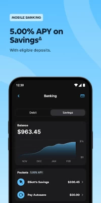 5.00% annual percentage yield (APY) applies to the primary Savings pocket and custom pockets of customers who either (i) received $500 or more of eligible direct deposits in the previous month or (ii) have a total daily account balance of $5,000 or more. Customers can also earn 5.00% APY on Pay Autosave and ONE@Work Save balances. In all instances 5.00% APY is limited to a total Savings balance of up to $250,000. All other Savings balances will earn 1.00% APY.