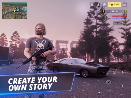 Cars for every taste. Buy and tune them however you like, and then drive around with your gang!
