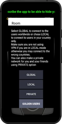 All Users can also define a 20 character key code using PRIVATE button and share with each other and make a private network that only the users who have this code can connect to each other.