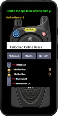 If you are a subscriber, you can hide your ID and be in the app like a ghost !