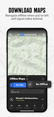 Save Offline Maps to bring your custom maps when you're outside cell coverage. With the onX Backcountry App, turn your phone into a handheld GPS device using your phone's internal GPS. Navigate offline by following the blue dot to always know how to get home. Leave a breadcrumb trail with Tracker to see where you’ve been and measure your key trip stats.