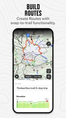 Snap-to-trail route builder to plan trips and see distance and elevation gain in seconds