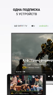 - Возможность просмотра онлайн телевидения на 5 устройствах.