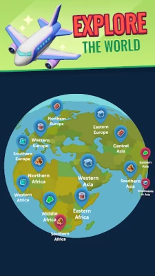 - TRAVEL THE WORLD: The game includes a fully interactable 3D World Globe with over 60 different destinations to visit! Each region will provide you with a different reward in Coins or Resources, so explore the world to find the best destinations for your situation!