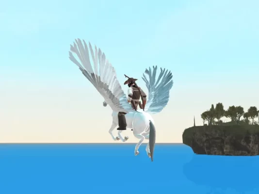 There are fifteen levels in this game. In each level, use your horse riding and flying skills to collect checkpoints and hidden stars. Collecting at least two stars is compulsory for completing level. There is also an open world mode for training and mastering the pegasus flight. You can also combat with other characters with swords, axe, bows and stones. In Open World Mode, You can interact with other characters to get quests from them. By completing quests, you can earn gold and swords as a reward.