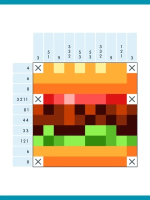 Reveal hidden images on the board based on the numbers lined up in both directions!