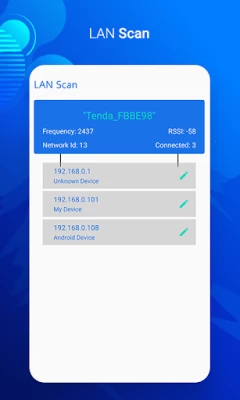 LAN Scan : Get current WiFi connected device information with same network also you can edit name.