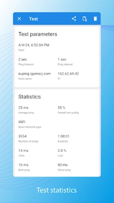 Pingmon will allow you to check the channel up to your critical network resources, if any. You need to know the basic parameters of game servers (ping latency, jitter, lost) so that your game does not turn into torment. Ping monitor will calculate them and tell you how adequate this server is for the game.