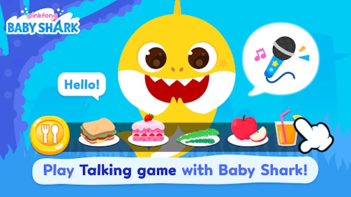 - Feed and treat hungry Baby Shark with its favorite food - cake, sandwich, salad, apple - and watch its special dance!