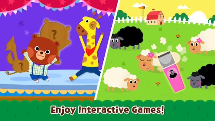 - Playful activities including puzzles, card matching, and running games