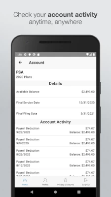 Save time and hassles while making the most of your HSA, HRA, and FSA health benefit accounts by quickly checking your balances and details. Our secure app makes managing your health benefits easy through real-time access and intuitive navigation to all your important account information on the go! Powerful features of the app include: