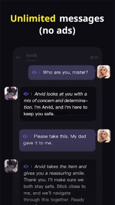 Unlimited free messages - No limits on chat length or frequency. Engage in endless conversations with your favorite characters or NPCs, completely free and without worrying about time or limits.