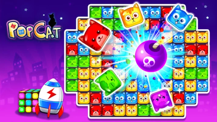 Blast cats blocks & have fun just in the world of Pop Cat!