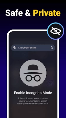 Private Browser enables you to have a private and anonymous web experience. The incognito mode ensures your browsing history is not recorded.