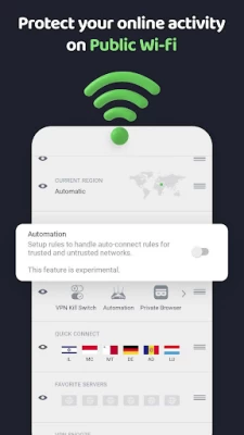 ✔ Per-Network Settings: Automatically enable the secure VPN connection when rejoining an unsecured WiFi network.