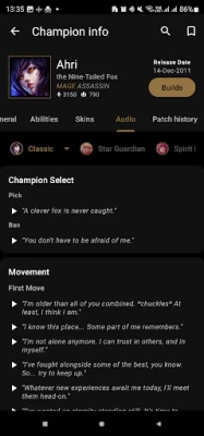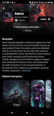 League of Legends is a beautiful game both in & out with amazingly developed characters. Get to know more by experiencing the magical world of Runeterra through a vast collection of biographies, stories, audio and arts. We even feature an inspirational quote from a random champion in every app launch just for you to stay motivated and learn something unique all the time.